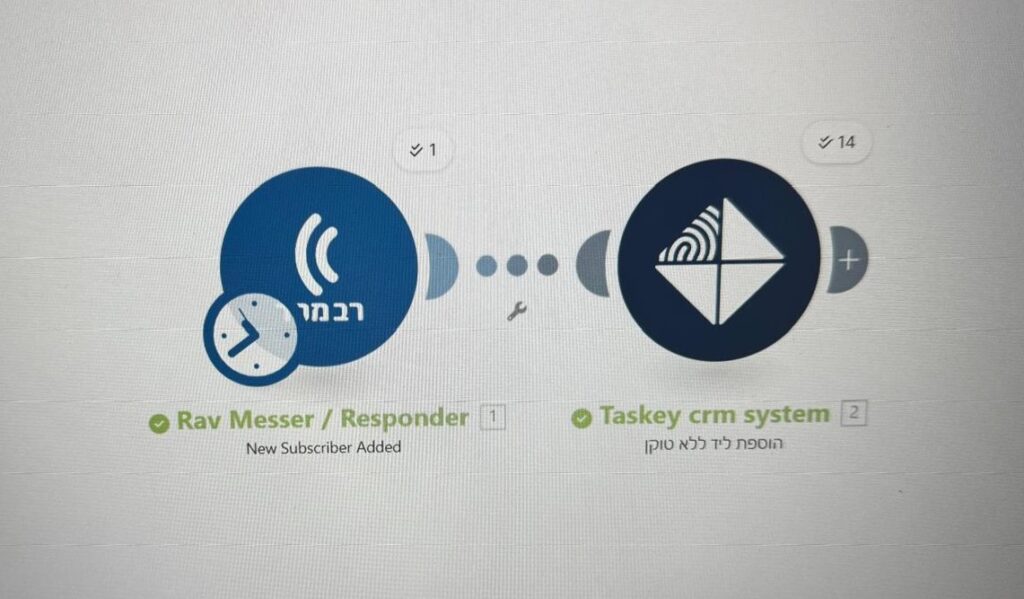 חיבור זה מאפשר העברת לידים שנאספים ברב מסר (במערכת הישנה) ישירות למערכת TASKEY בצורה אוטומטית, באמצעות פלטפורמת האוטומציות Make.