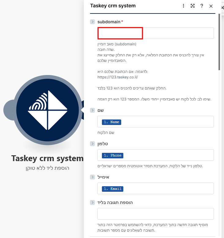 שלב 5: חיבור TASKEY ומיפוי שדות הליד